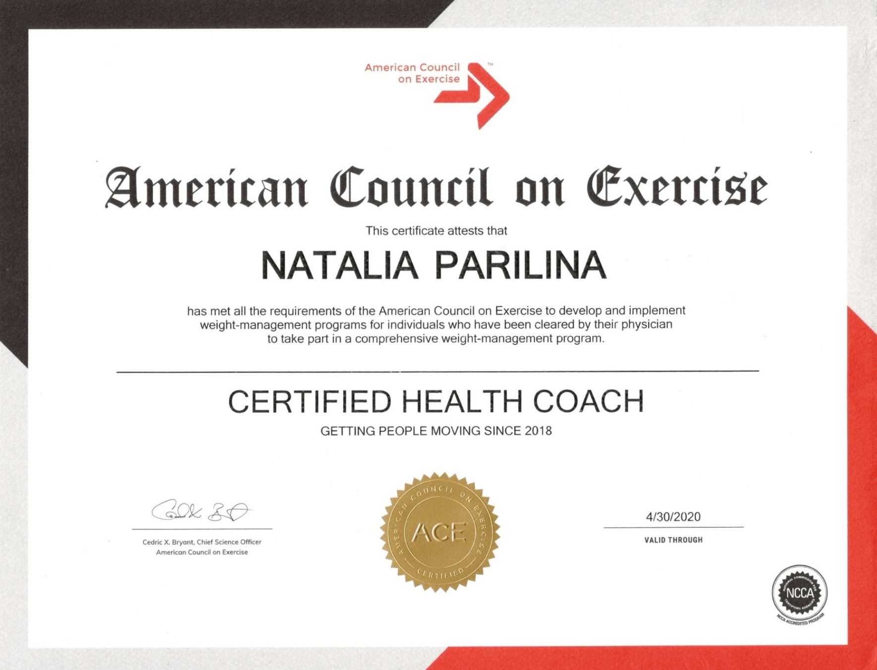 2016-2017 American Council on Exercise (ACE Fitness), Health Coach