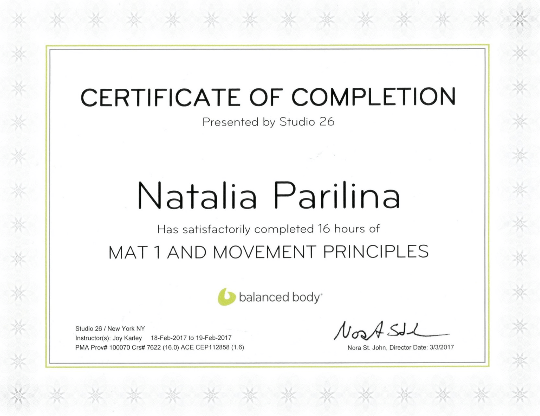2017 Balanced Body, Pilates Mat I Instructor Training